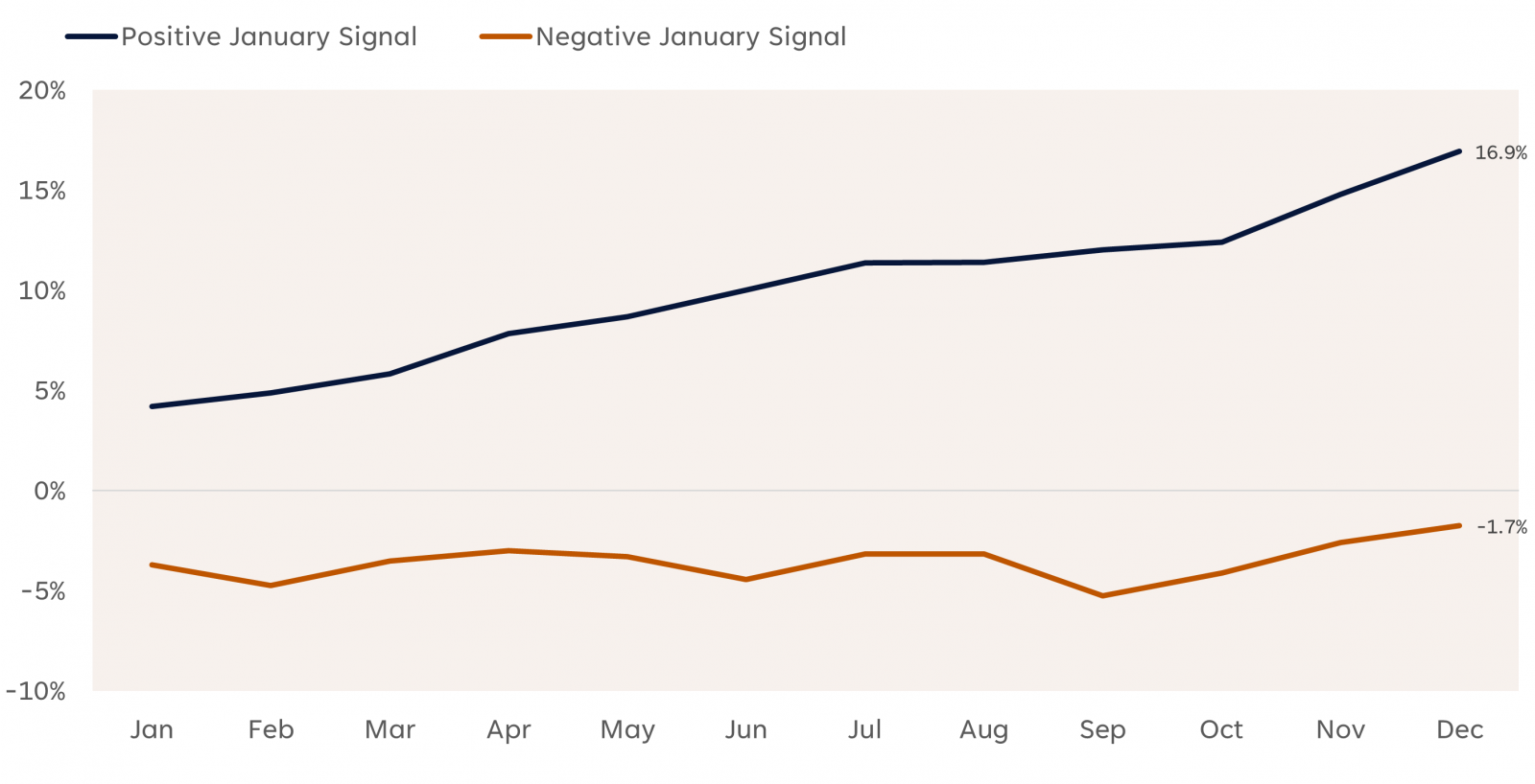 • By contrast, when January posted a loss, average annual returns fell to -1.7%, and stocks finished the year higher in only 50% of instances.