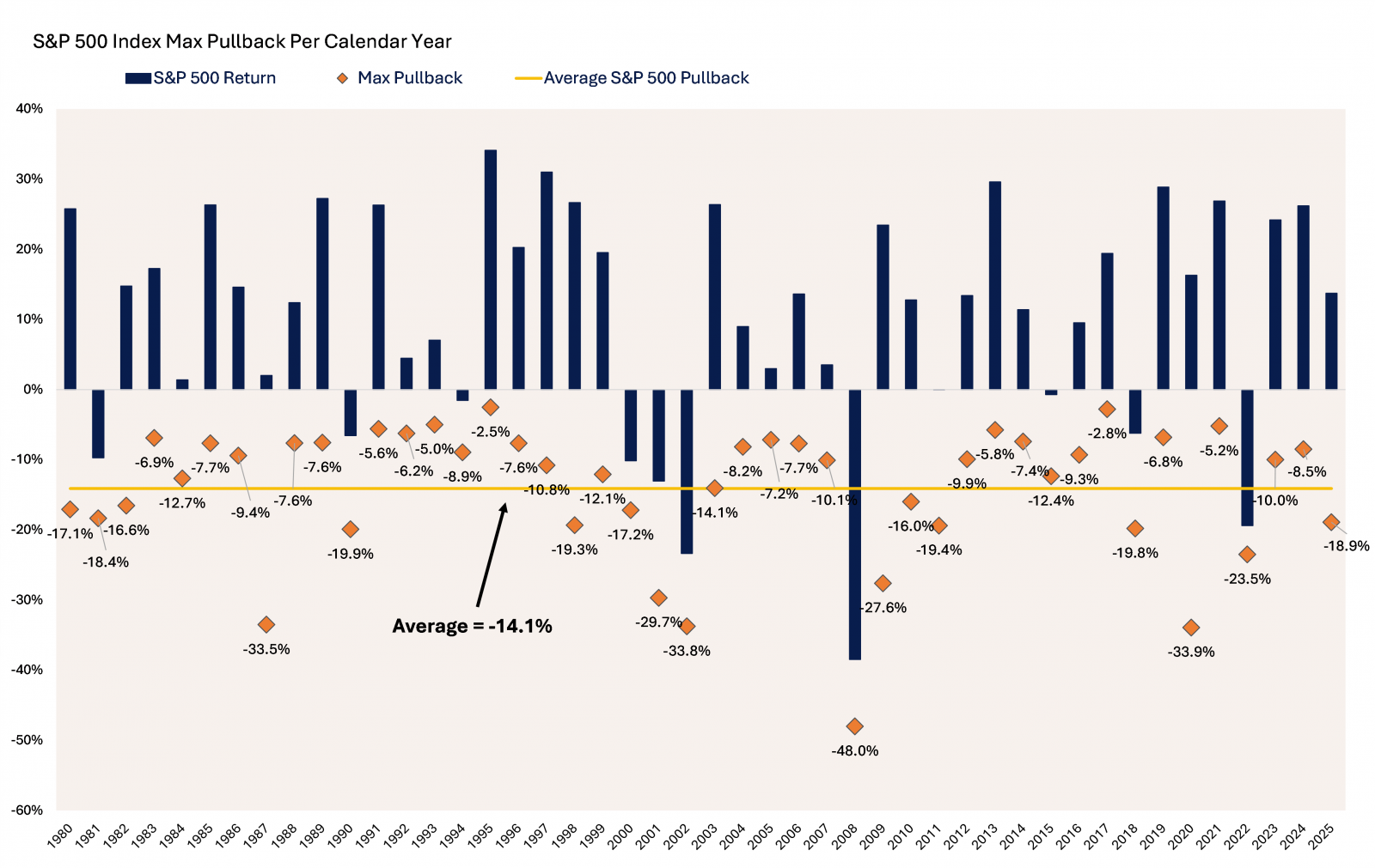 Of course, every year is different, but one element of the path for stocks this year that is quite common is the fact that stocks suffered a correction on the way to strong gains. As you can see in the “It’s Not Over Yet, But 2025 Looks Like Another Year of Big Gains and a Large Drawdown” chart, the S&P 500 experienced a drawdown of 18.9% this year but is actually up more than 13% for the year. This pattern is not uncommon, as the chart illustrates. In fact, the average drawdown in a given calendar year has been over 14% since 1980, while the S&P 500 has gained an average of 10.7% per year during that time. Double-digit intra-year declines often come with double-digit annual gains, one of the most powerful messages in investing. It’s easy to get scared out of the market when volatility arrives, so those investors who keep this pattern in mind should be more confident holding on through the tough times.